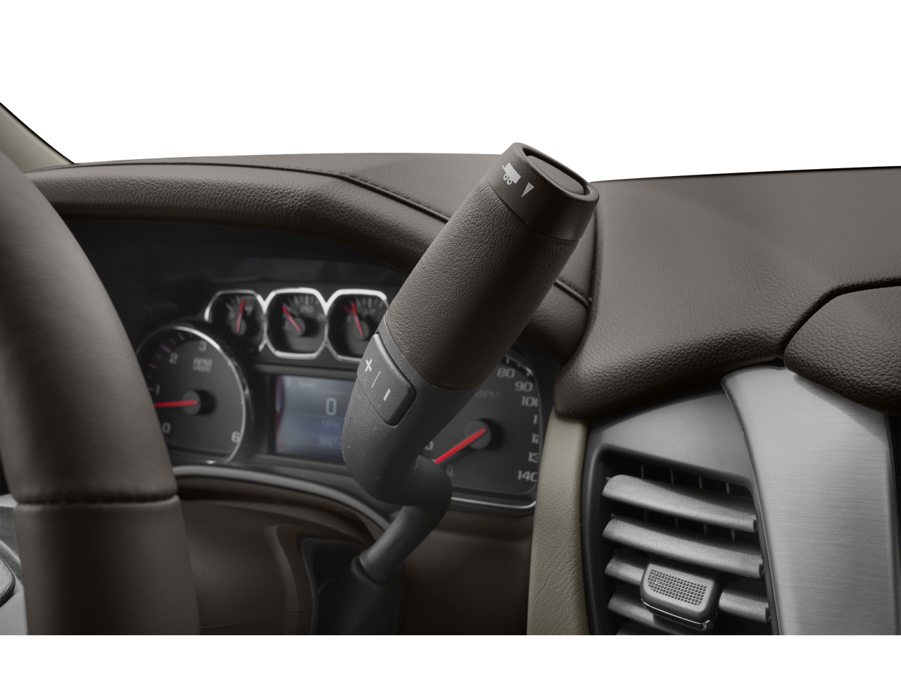 - Tow/haul mode selector, button located at end of shift lever