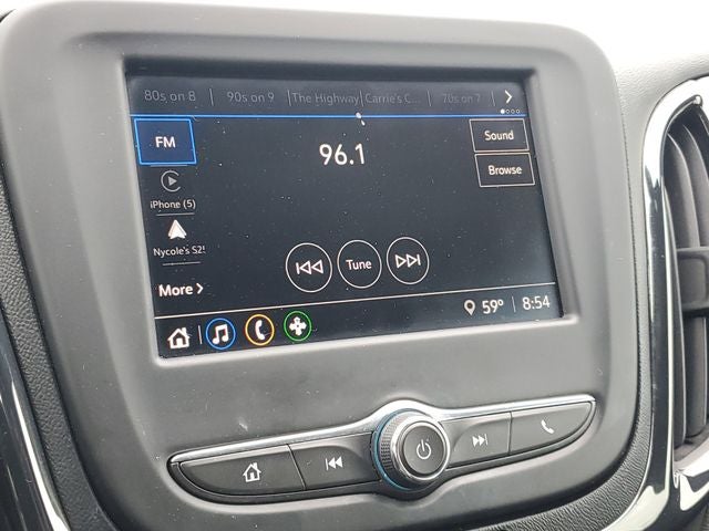 - Audio system, Chevrolet Infotainment 3 system, 7" diagonal color touchscreen, AM/FM stereo. Additional features for compatible phones include: Bluetooth® audio streaming for 2 active devices, voice command pass-through to phone, Apple CarPlay and Android Auto capable.